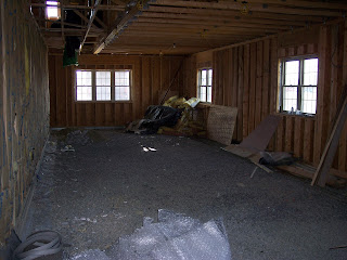The total space available was 2500 sq.ft., which was a bit much for me as a start-up business. So the landlord allowed me to split the space down to 1250 sq.ft. This is the other unfinished half, which is pretty much what things looked like before the office even took shape. And then below is how the back hallway looked early on, and then the finished product: